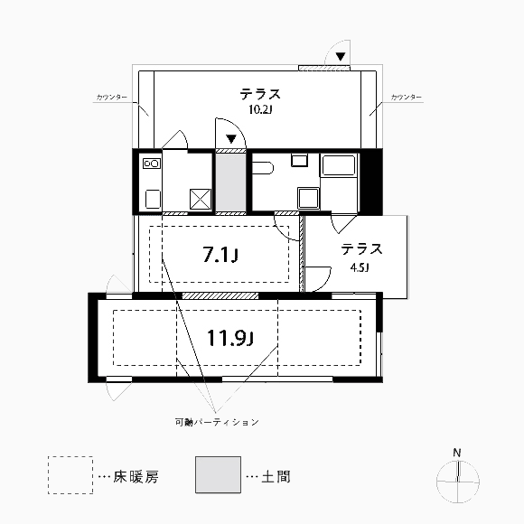 玄関部分は土間になっており、入ると7.0帖のダイニングスペースがあります。